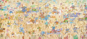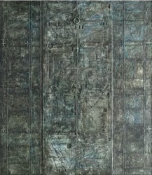 اثری که از او در ۲۴ مین حراج تهران با قیمت ۱۳ میلیارد و ۸۶۰ میلیون تومان به فروش رسید، «نقشبرجسته» نام دارد. این تابلو تلفیقی است از موادی بهغیراز رنگ، و با استفاده از ورق آلومینیوم که روی بوم نشسته، ساخته شده است تا تداعیکننده سنگهای استفاده شده در نقشبرجستههای ایرانی باشد، چه آنان که در دل کوهها کنده شده همچون کتیبههای طاقبستان، چه سربازان سنگی «پارسه» (تختجمشید) که مهمانان را به ضیافت میبرند.