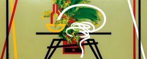 در تابلوی طبیعت بیجان، او عناصر ایستا همچون خطوط را برای مشخصکردن زوایا و محدودکردن ساختار در اطراف قاب قرار داده است، محکم و بدون تزلزل، همانطور که خطوط سایر اشیا که میتواند میز، صندلی، شیشه و… باشند، اشیایی که به نظم انسانی و آدموار برای زیستی در قالب، ساخته و در کنار هم قرار گرفتهاند. اما در میان این عناصر، گسترهای سبزرنگ با لکههای زرد و سرخ و نارنجی که میتواند القایی از یک حیات طبیعی باشد، در دل این بستر، به زندگی بدون قواعد هندسی القایی ادامه میدهد و در عین بینظمی با نظمی درونزا، آهستهآهسته ریشه و ساقه و گل داده است. خط درهم آشفته سفیدرنگ هم میتواند دنبالکننده حرکت زیست آن گیاه سبز باشد.